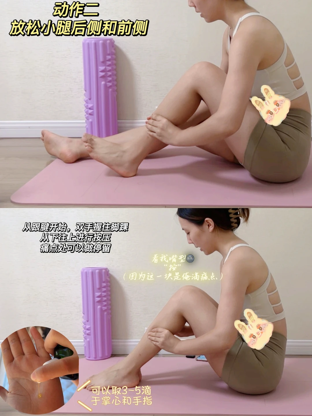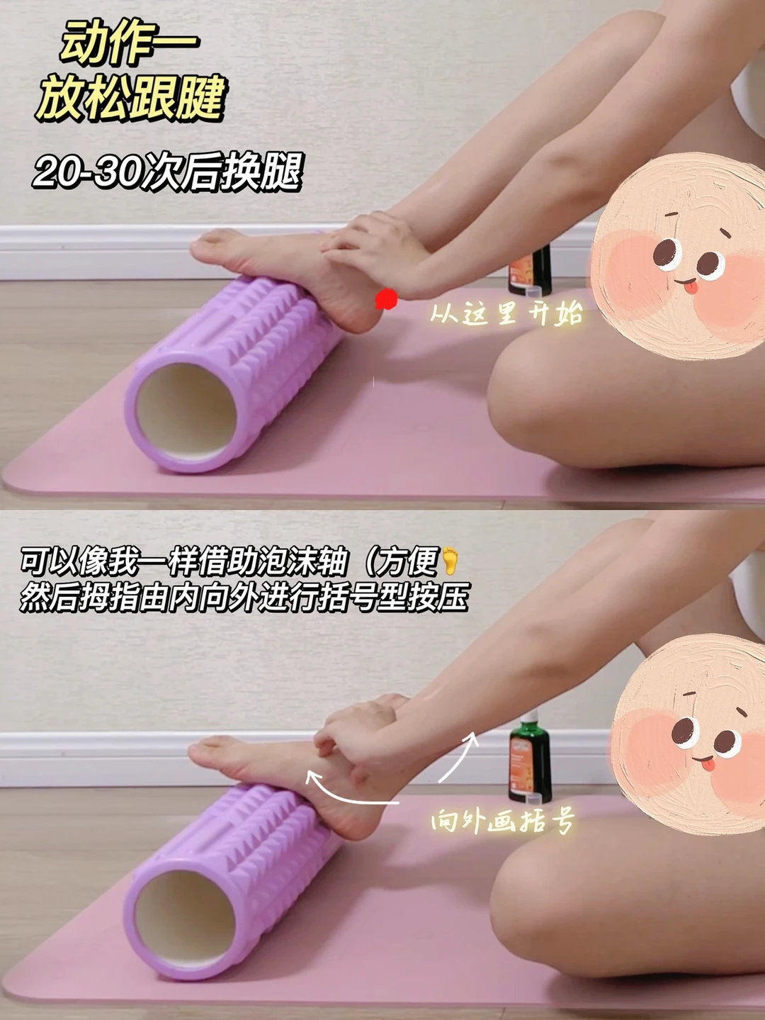 ✅按摩油辅助放松跟腱(由内向外放松)