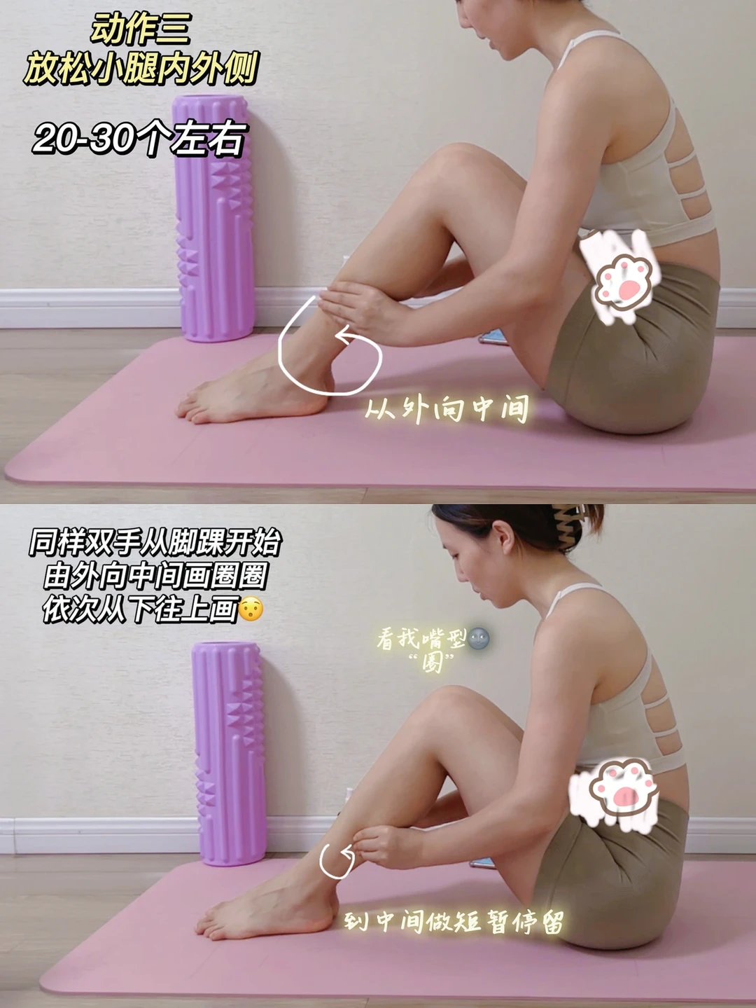 不要忽略这一步!因为腿不直包括膝超伸的姐妹腿部肌肉都是紧张的;还有一些姐妹久坐久站,腿部肌肉僵硬容易形成块状肌肉腿。