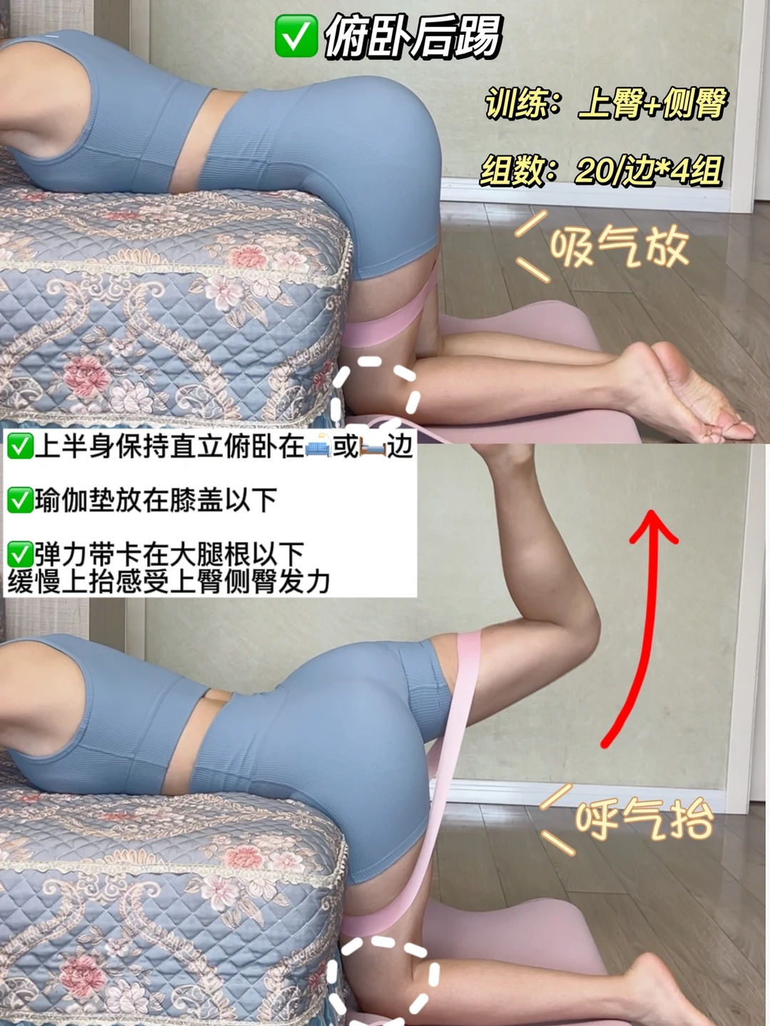 ✅可以跪在瑜伽垫做或者俯卧在沙发和床边做