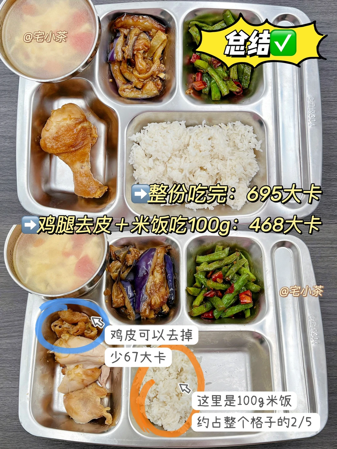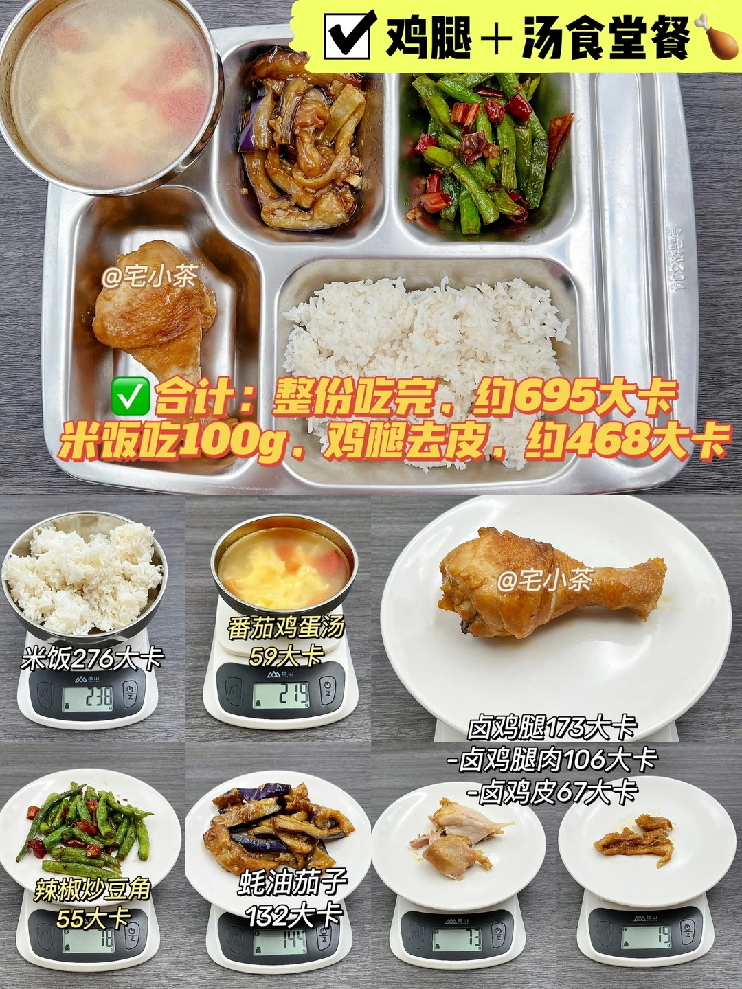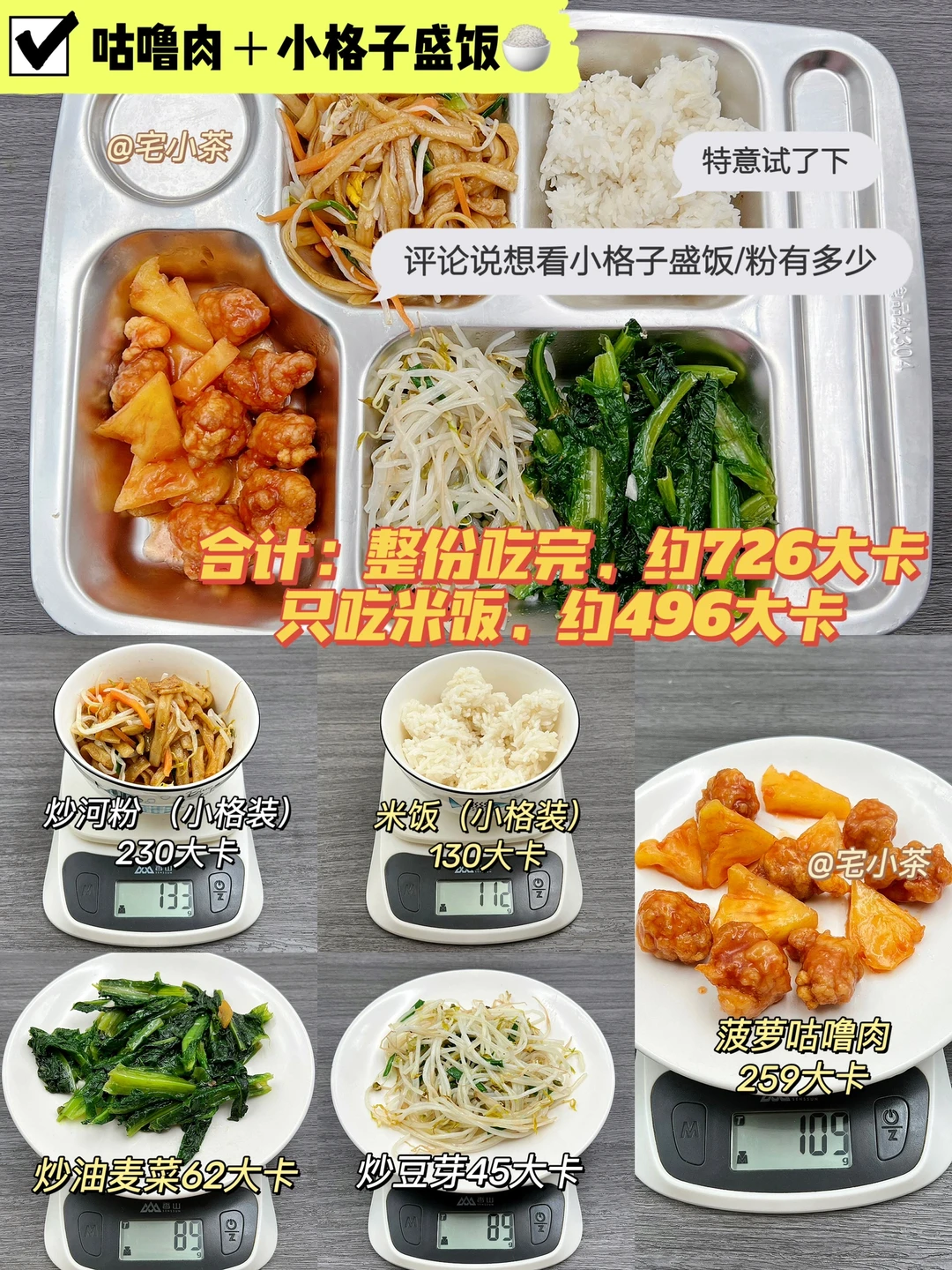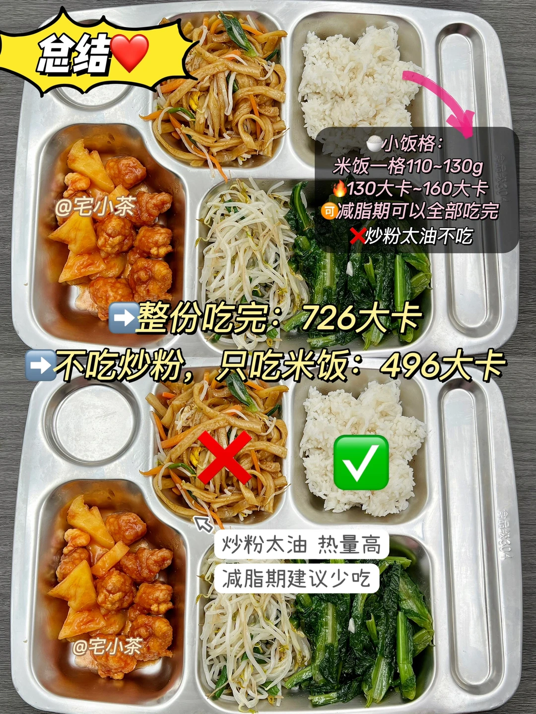 总的来说,就算是吃食堂饭菜(量大+油大),热量也是可以控制在一顿500大卡左右的~不必太过担心!