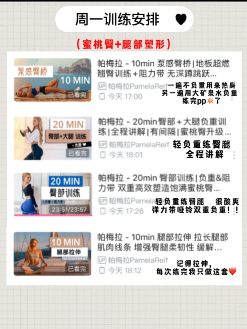 2.帕姐的两个20分钟臀腿塑形(都是练整个臀)