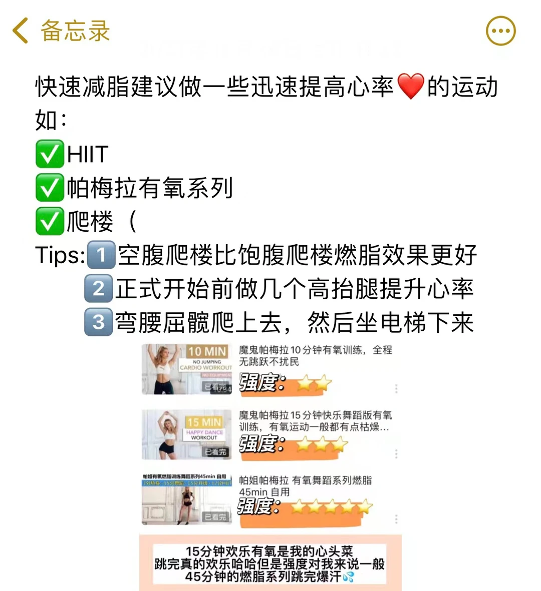 🌟想快速减脂的姐妹可以做一些迅速提高心率的运动如: