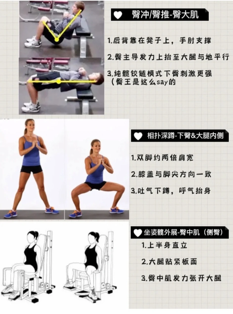 ✅有点基础的姐妹可以康康我搁健身房的练臀动作👇(图4-5中有动作详细解说)