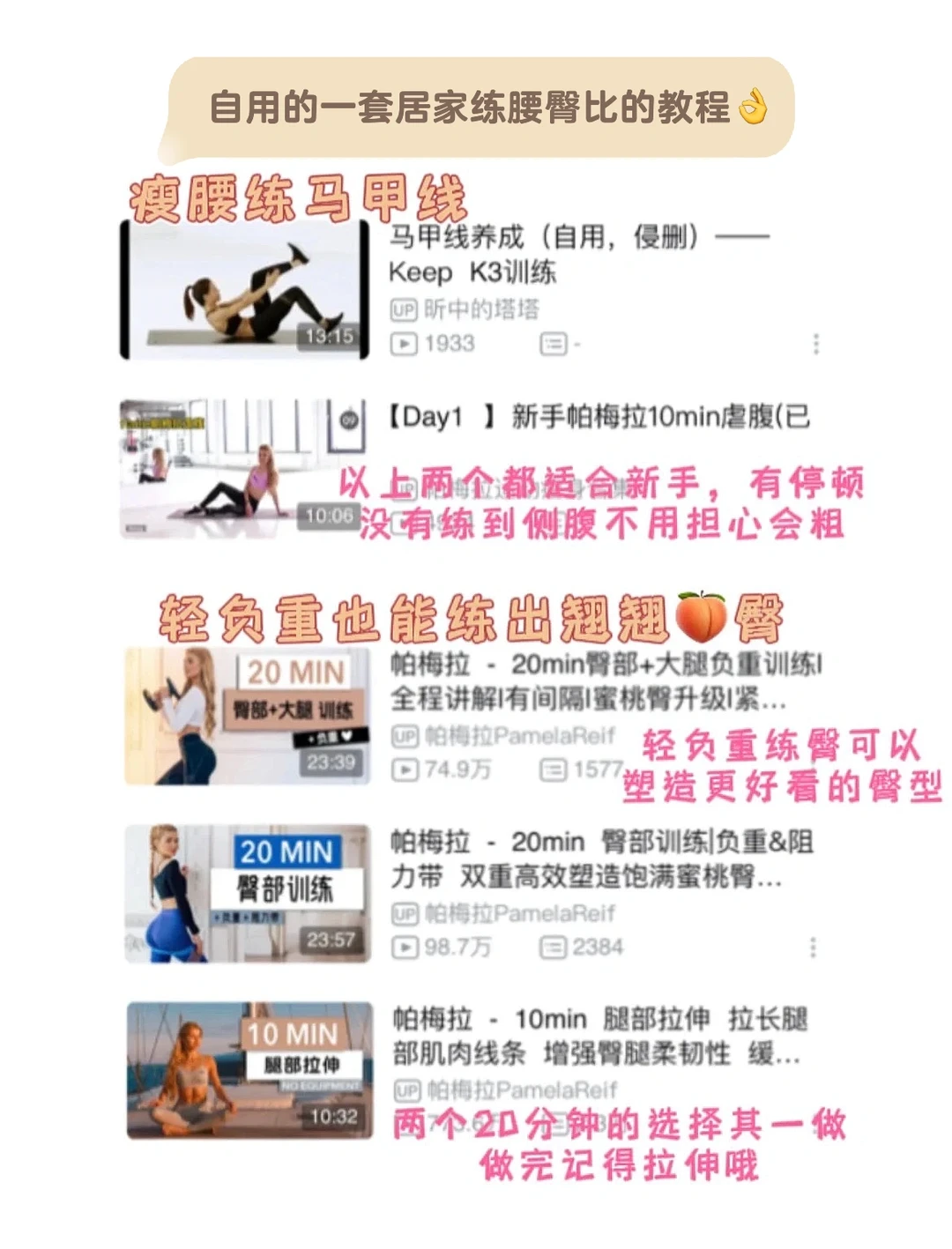 ✅新手姐妹们,建议在家跟着教学把基本要领掌握,并且每周至少安排一次负重练臀以达到更好的塑型(负重可用60磅以上阻力带,5kg以上哑铃或者用5L大矿泉水瓶,跟练在图3)