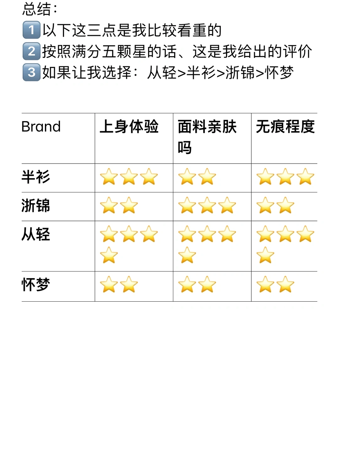 3️⃣从轻:面料很亲肤,上身是真滴无痕,我这段时间都在穿,pp设计和其他三种不同的是,有个“轻气球”的设计,所以不会闷