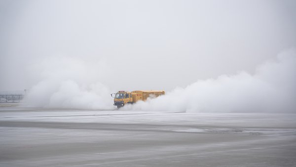 与此同时,随着机场区域逐渐出现降雪,针对航站楼上下引桥、停车场进出口、地铁口、场区主干道等易滑路段,济南机场组织人员加密巡查频次,通过机械清扫与融雪剂铺撒相结合的方式,有效避免道路湿滑给车辆和旅客带来不便。