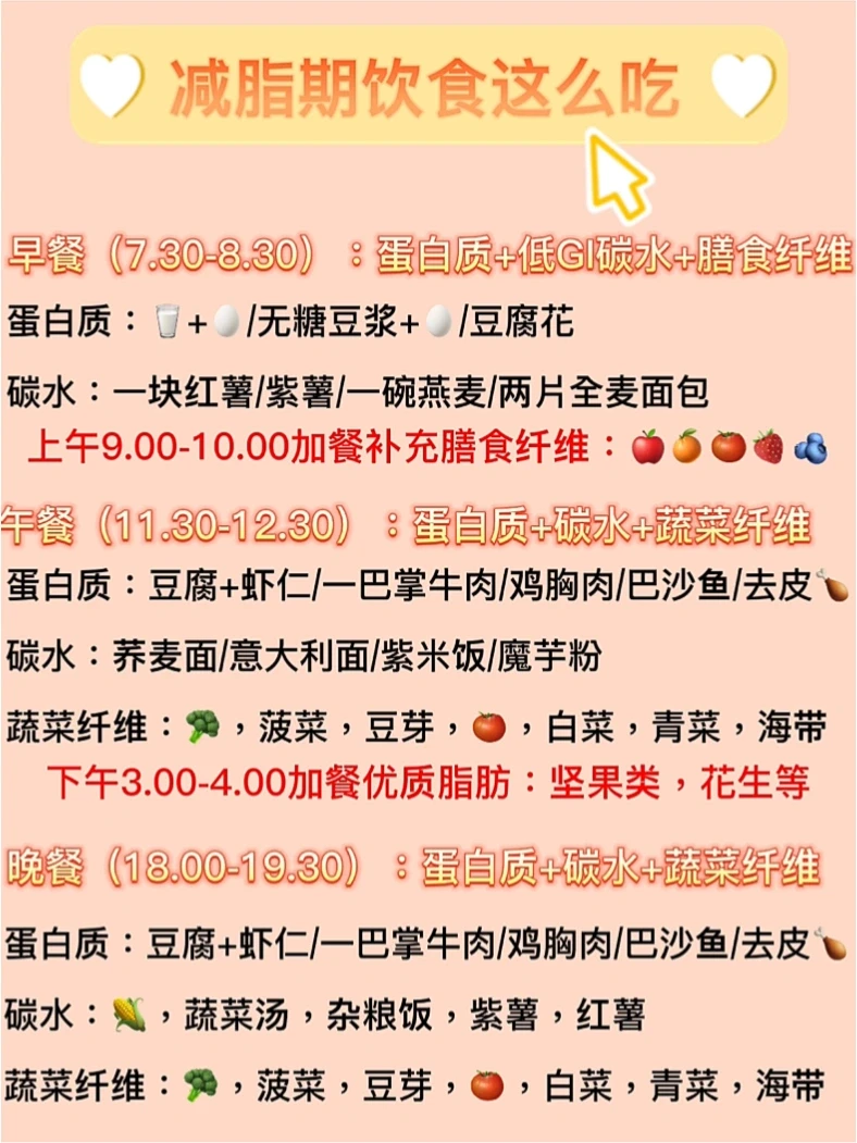 🔹刷脂期把一天三餐又细分为:三大餐+两小餐(上午10点左右会吃水果补充膳食纤维,下午三点会吃坚果类)所以也比较顺利后期也没有反升。