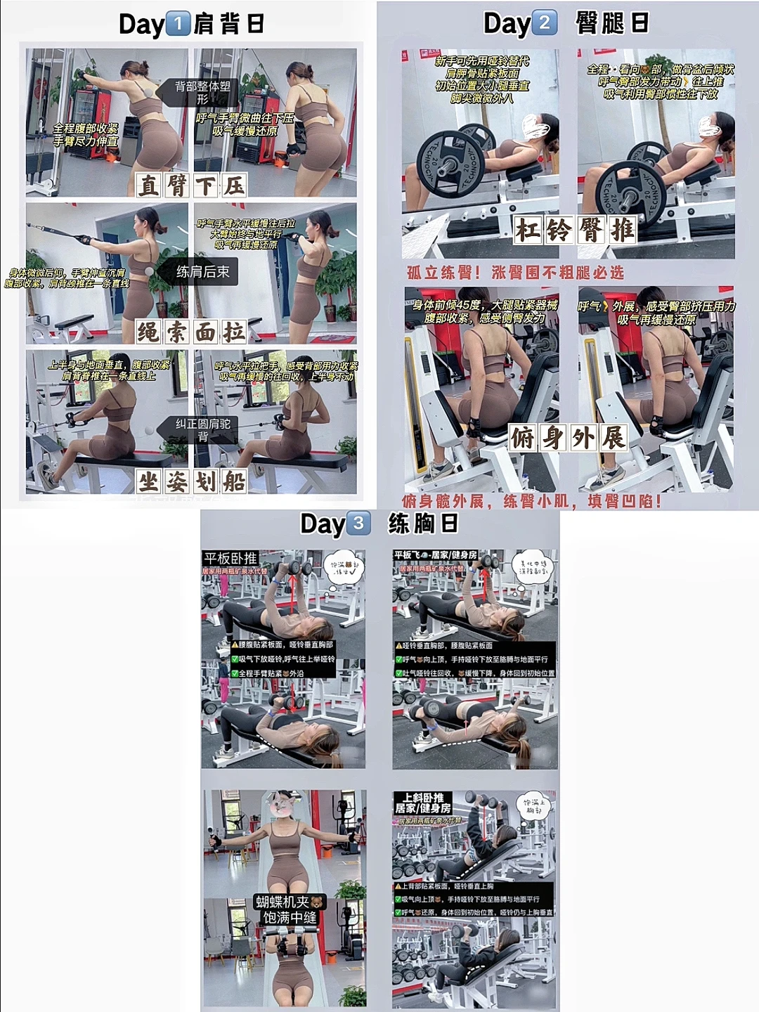 后来一周保持4次左右训练,有氧运动主要就是健身房的跑步机,椭圆机爬梯机这些,无氧运动可以参考图4,训练计划具体如下:
