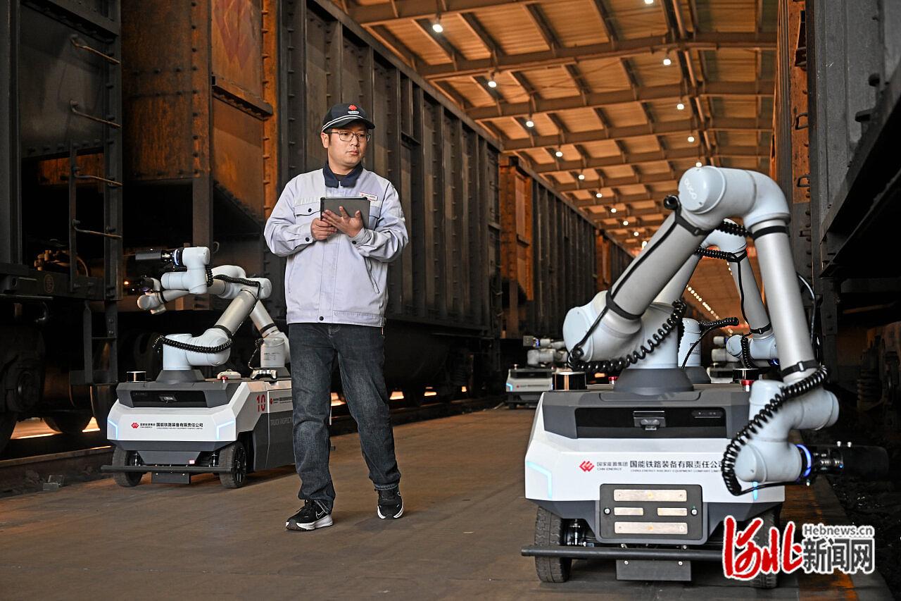 1月10日,智能巡检机器人对列车进行自动巡检。
