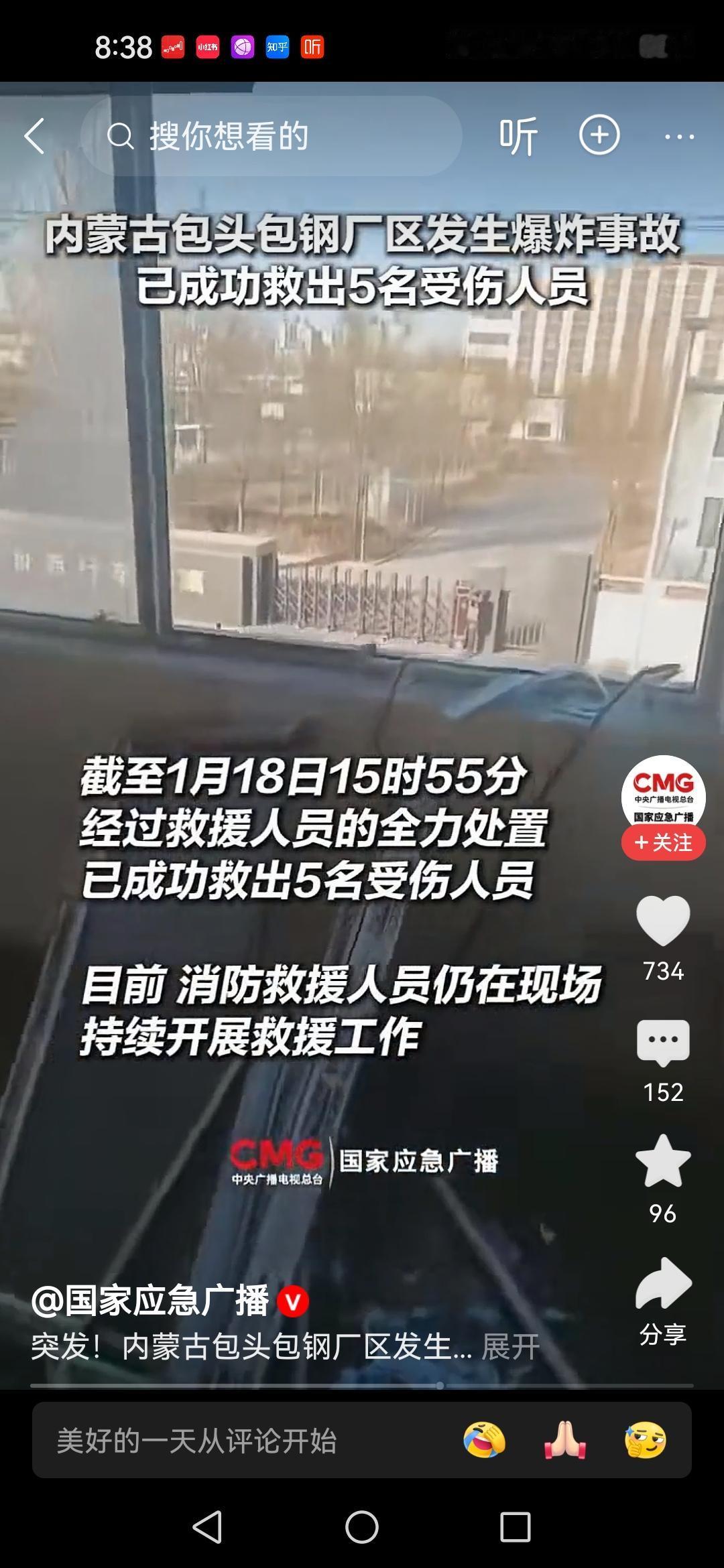 包钢那个在股市连续吸引关注的公司。 却因为一场爆炸而被更多人所熟知。 1月18日15时左右,一板材厂发生爆炸,登时火球冲天。官方通报:2人确认死亡,5人失联,66人受伤,其中3人危重。 爆炸冲击波导致周边居民房屋玻璃门窗震碎,有物体从厂区飞出砸塌民房,浓烟一度笼罩天空。附近商户形容爆炸“如同地震”,波及范围较广。 希望失联的人能安全[祈祷][祈祷][祈祷]