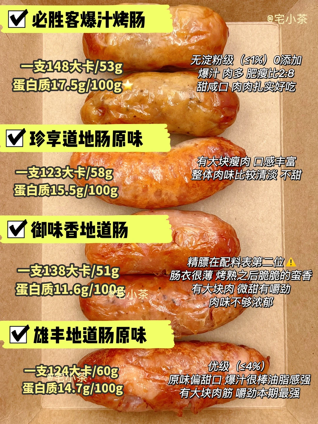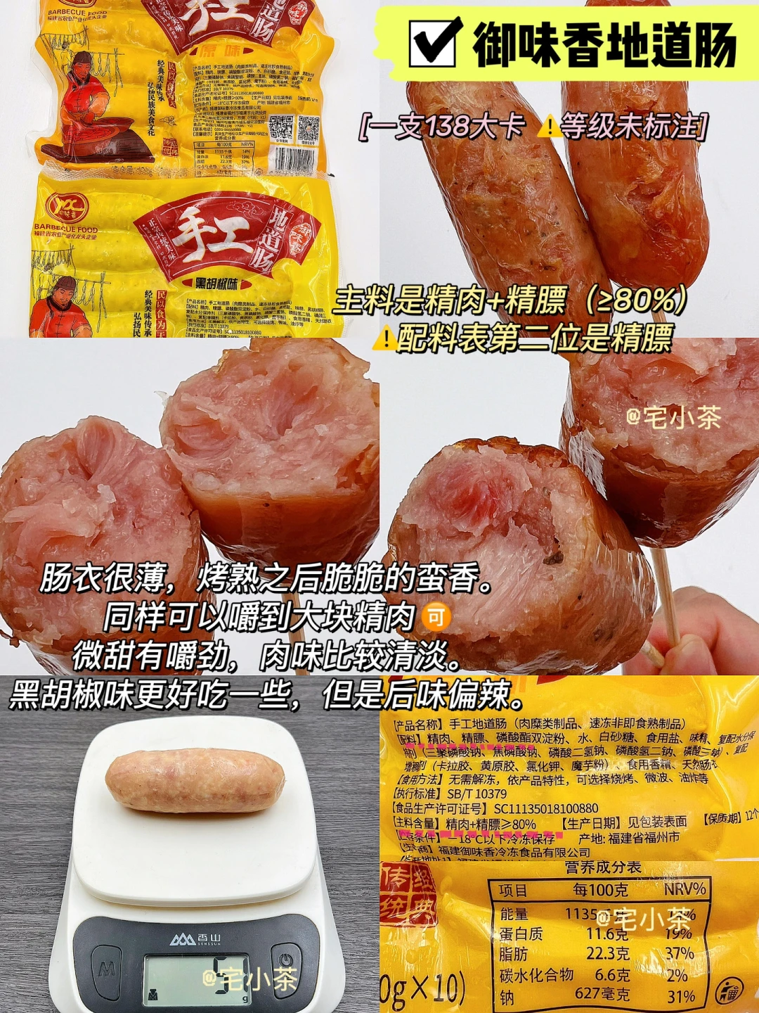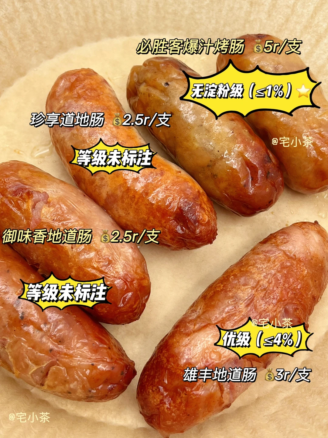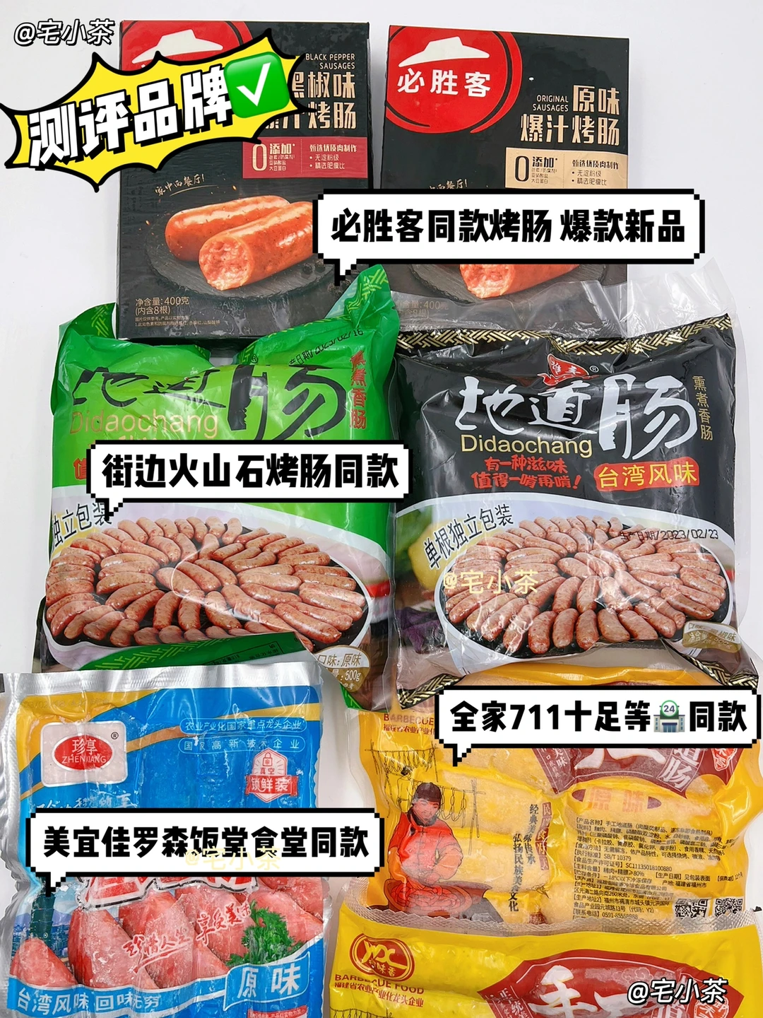 ✅测评品牌:必胜客烤肠原味&黑胡椒味,雄丰烤肠原味&黑胡椒味、御味香烤肠、珍享烤肠、共4个热门品牌,6个口味。