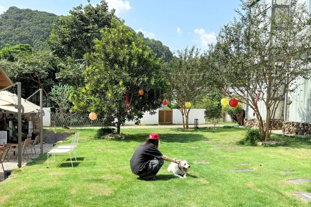 终于找到广东狗狗也能疯玩的民宿🐕! 野渡谷的大草坪直接封神,刚到就被社牛小野缠上,追着人要贴贴,阳光、草坪、修狗,周末的快乐直接拉满🌿 木质结构的玻璃屋在阳光下通透又温暖,点一杯手冲咖啡坐在院子里,看远处的山影在云里忽明忽暗,时间好像都慢了下来。傍晚在草坪上和狗狗玩飞盘,风里都是桂花香,这种松弛感,才是周末该有的样子啊~ 📍坐标:广东清远野渡谷民宿 💡Tips:宠物友好|超大草坪|玻璃屋咖啡|山野景观