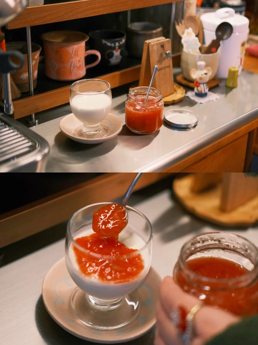 降温宅家 做一杯草莓奶冻 泡一壶热茶 在一个自由散漫的下午🫖