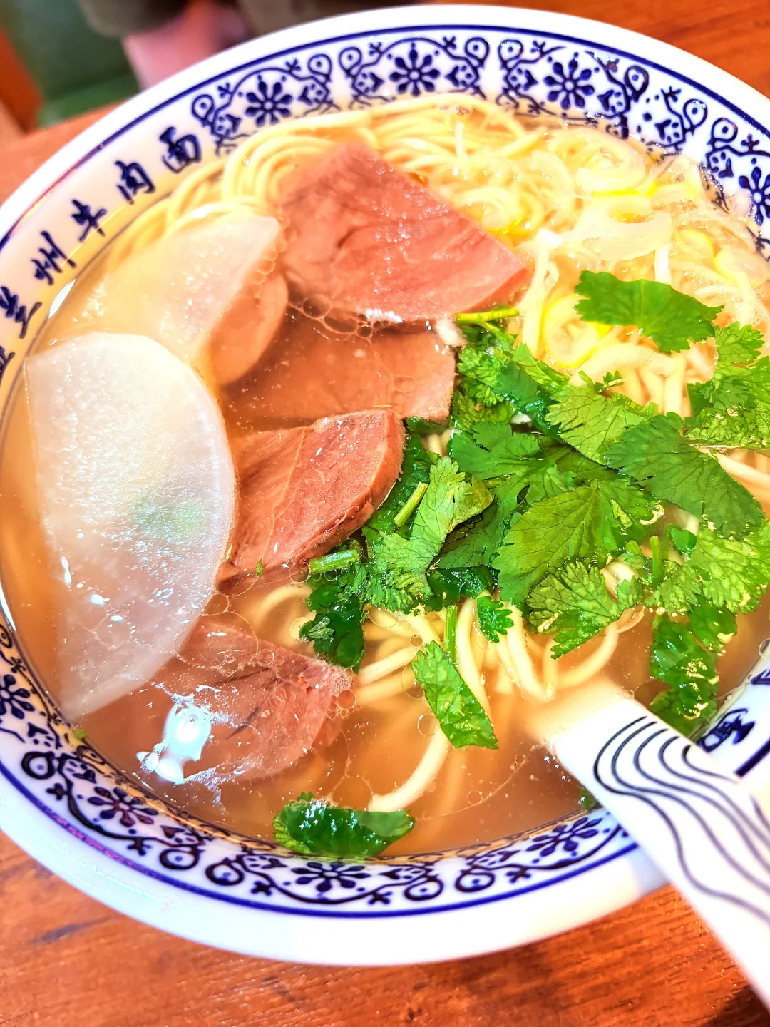 省流:蘭州牛肉麺 一盛 亀戸店 1180日元 只要1180我真的吃到撑!全是鸡腿肉没有骨头也不柴!土豆很面我喜欢!害得是宽面!大碗宽面爽! 浇汁儿咸淡合适,还点了牛肉面汤头好喝! 觉得性价比很高好吃的!两碗面一共2160很饱!