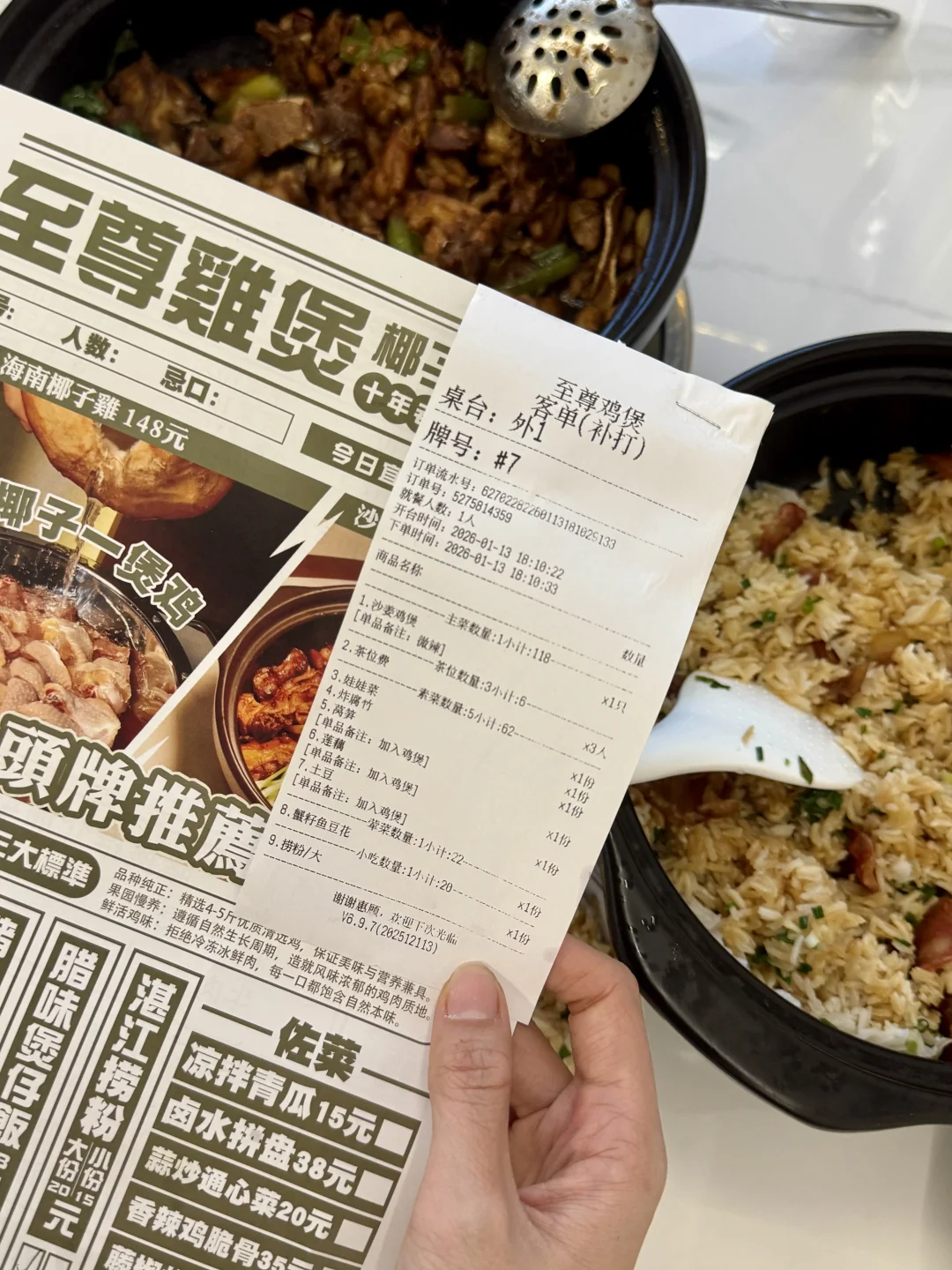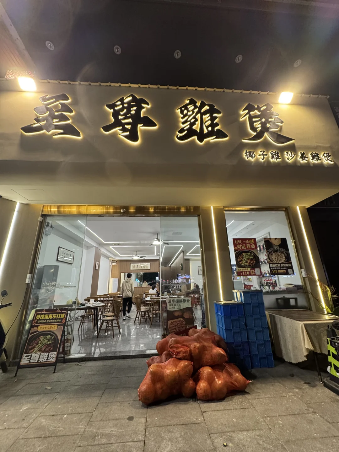 - 沙姜味超正,鸡肉嫩到爆汁 也是整只现点现杀 人多来吃更好 因为差不多4斤 份量超多😂 还有腊味煲仔饭拌着鸡煲吃真的巨香 配菜也多,捞粉也全是香油味 人均大概60-70+真的值得来 开到半夜3点多!! 📍厚街至尊鸡煲