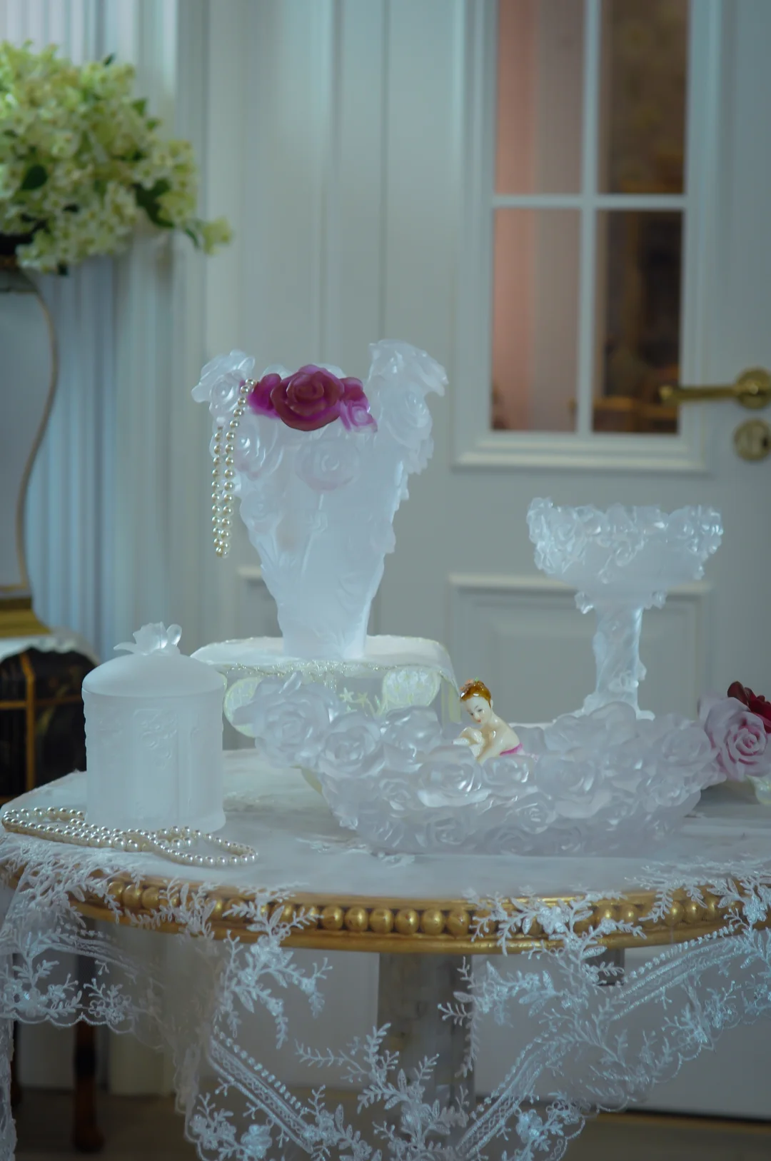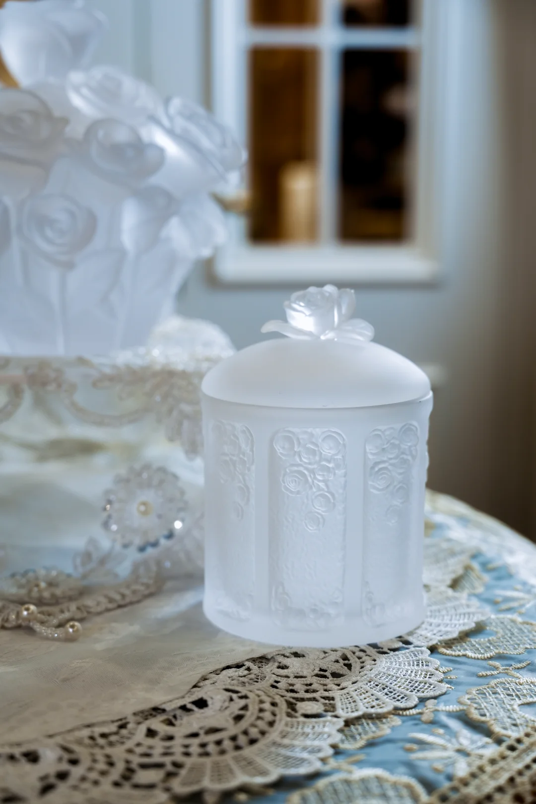 比起完美无瑕的现代玻璃,我更爱这种“不完美的灵性”。放在窗前,光线穿过时泛起朦胧光晕;配素色棉麻,清冷中生出温柔;搭深色木质,又显静谧禅意。