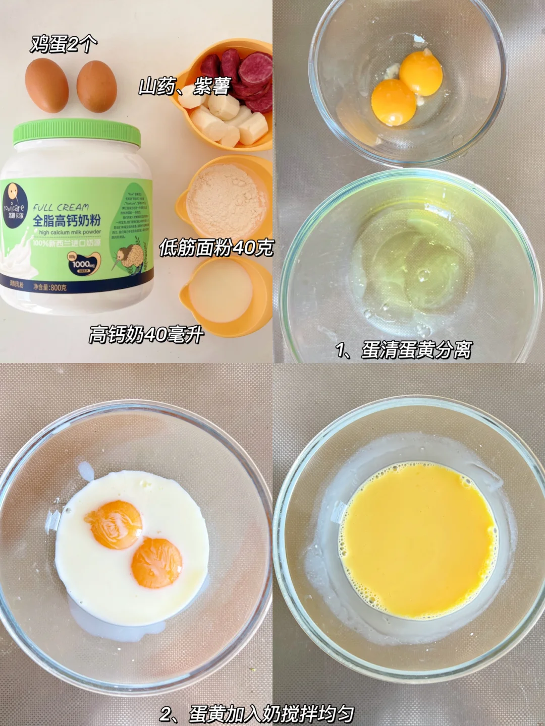 今天给大家分享一款月亮很喜欢的小蛋糕,用山药紫薯做夹心,健脾养胃又营养,奶香十足,而且操作很简单,妈妈们快安排吧,十个月以上的宝贝就可以吃啦!