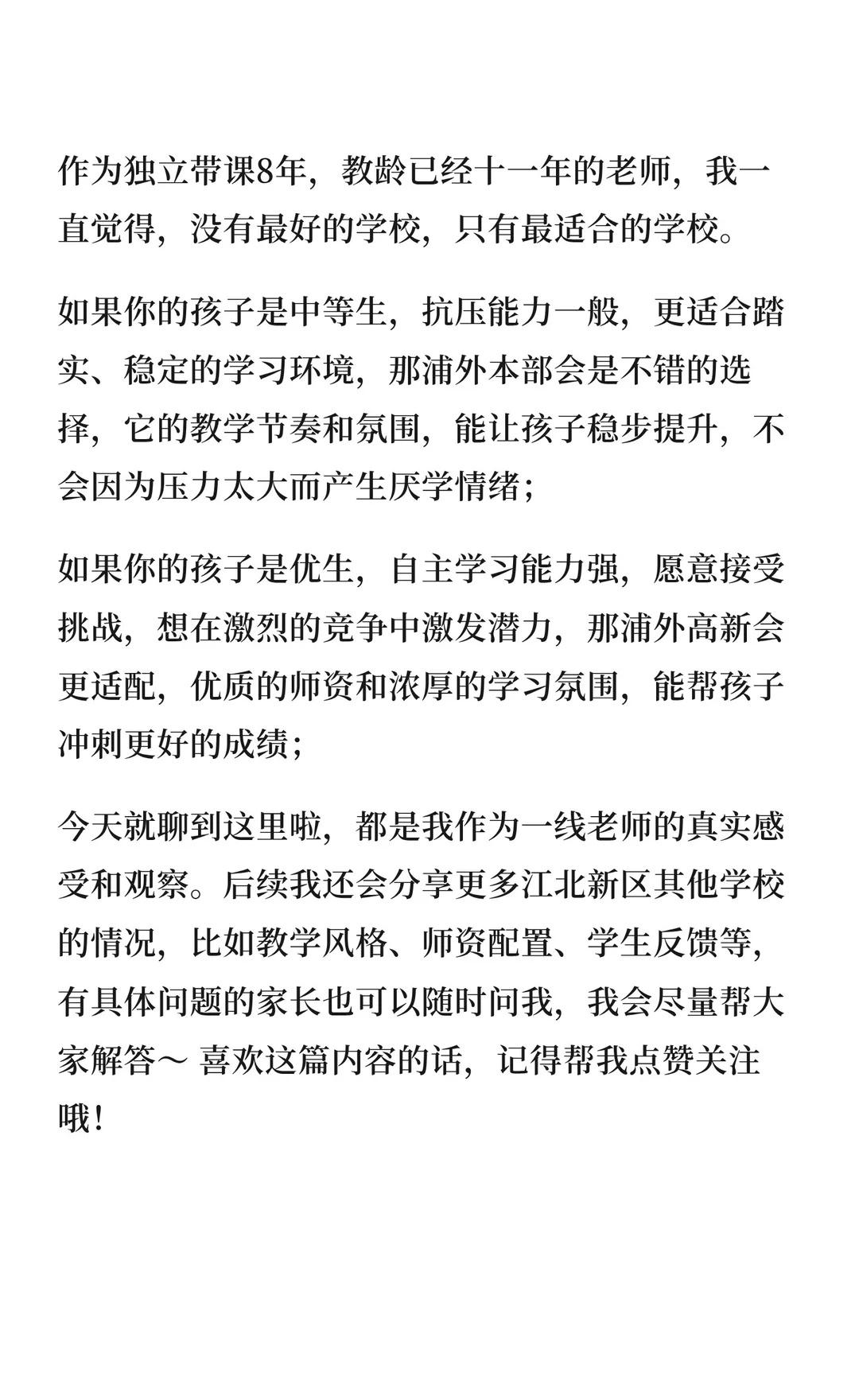 今天来聊聊浦口外国语学校和他的高新分校 今天来和大家聊聊浦外本部和他的高新分校。 丘老师和这两所学校还是挺有渊源的,写得也比较多。 想交流或者讨论的友友请注意: 平常教研工作忙,有疑问留言即可,看到会回复 脾气不是特别好,评论区不礼貌,不友好的评论会举报删除。 南京江北新区 浦外高新 浦口外国语高新分校学区 小升初 南京江北高新区 学区