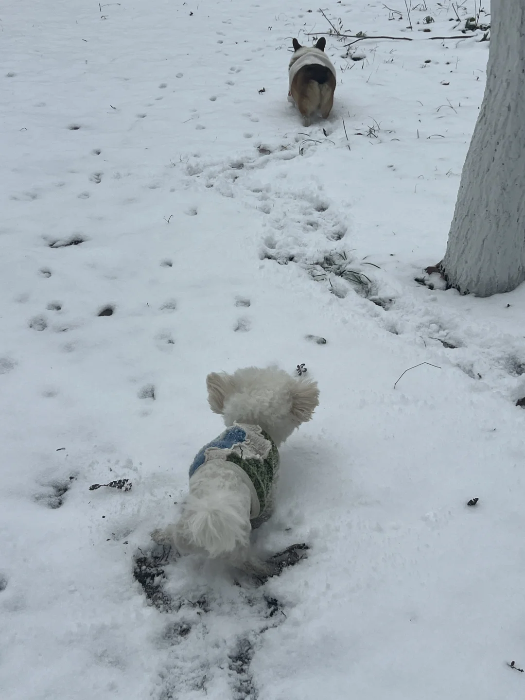 今天武汉下初雪啦 雪地里来两位小画家