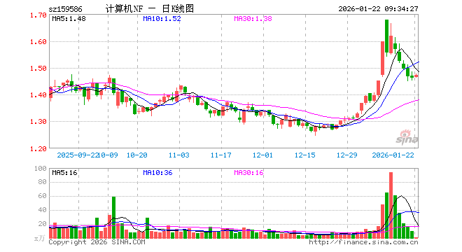 1月22日,计算机ETF南方(159586)开盘涨0.14%,报1.465元。计算机ETF南方(159586)重仓股方面,科大讯飞开盘涨0.88%,同花顺涨0.38%,金山办公涨0.53%,指南针涨0.06%,恒生电子涨0.59%,润和软件涨0.52%,三六零涨0.74%,拓维信息涨0.00%,用友网络涨0.66%。