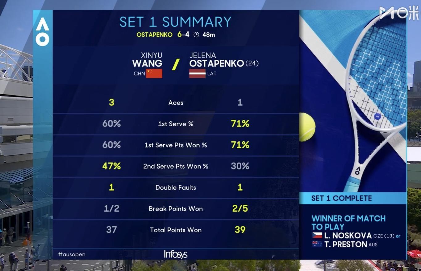 王欣瑜4-6输掉第一盘!王欣瑜vs奥斯塔彭科网球talking大会