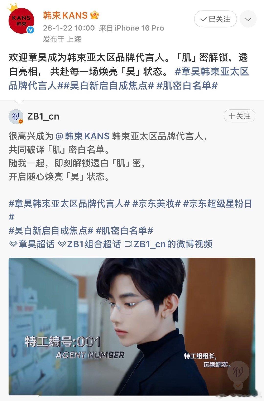 章昊韩束亚太区品牌代言人 章昊真的帅到心巴上!冷脸思考的样子生人勿近,特工风造型适配度拉满,不管是chill衬衫少年还是黑西装冷都男,颜值演技双在线