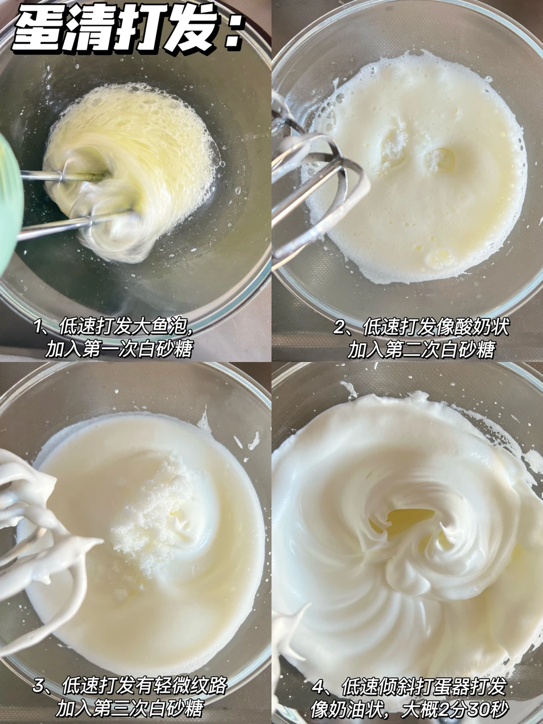 1、蛋清一定要放在无油无水的盆里!可以放冰箱冷冻15分钟再打发,更稳定,但是不放也可以的