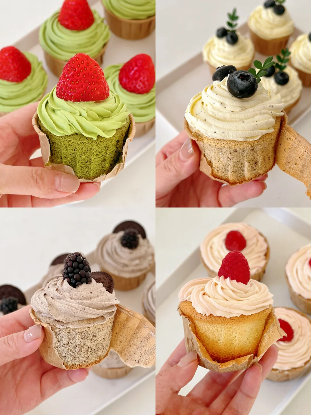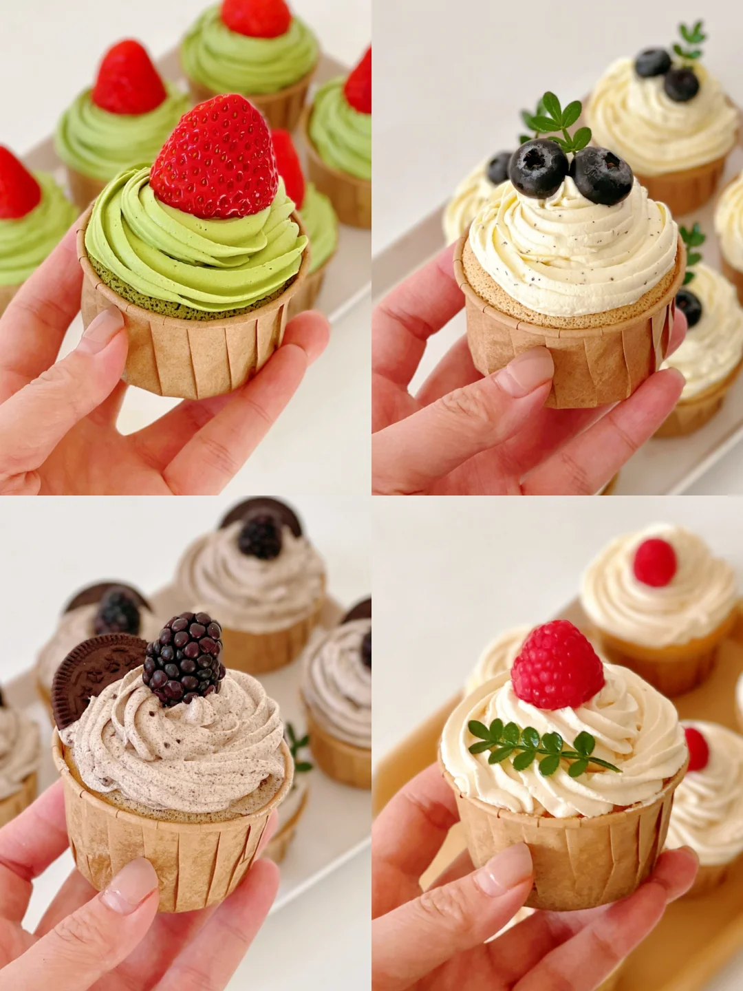 之前分享过原味的,今天继续分享几款好吃又好看的纸杯蛋糕,搭配了各种新鲜莓子,酸酸甜甜一点也不腻✌️