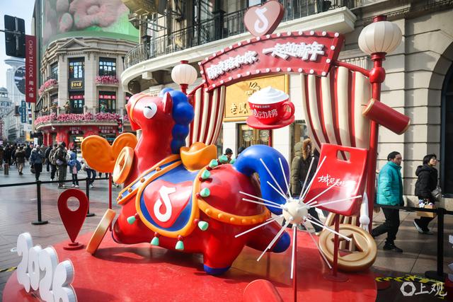南京东路步行街上的马年生肖主题美陈。