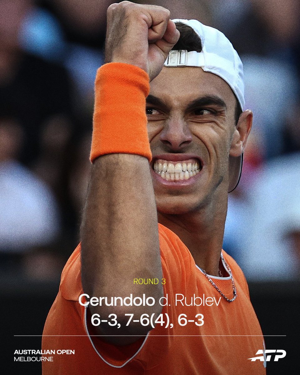 ATPTour(网球)报道。弗朗西斯科·塞伦多洛在墨尔本直落三盘击败安德烈·卢布列夫,晋级澳大利亚网球公开赛第四轮!@AustralianOpen|#A026
