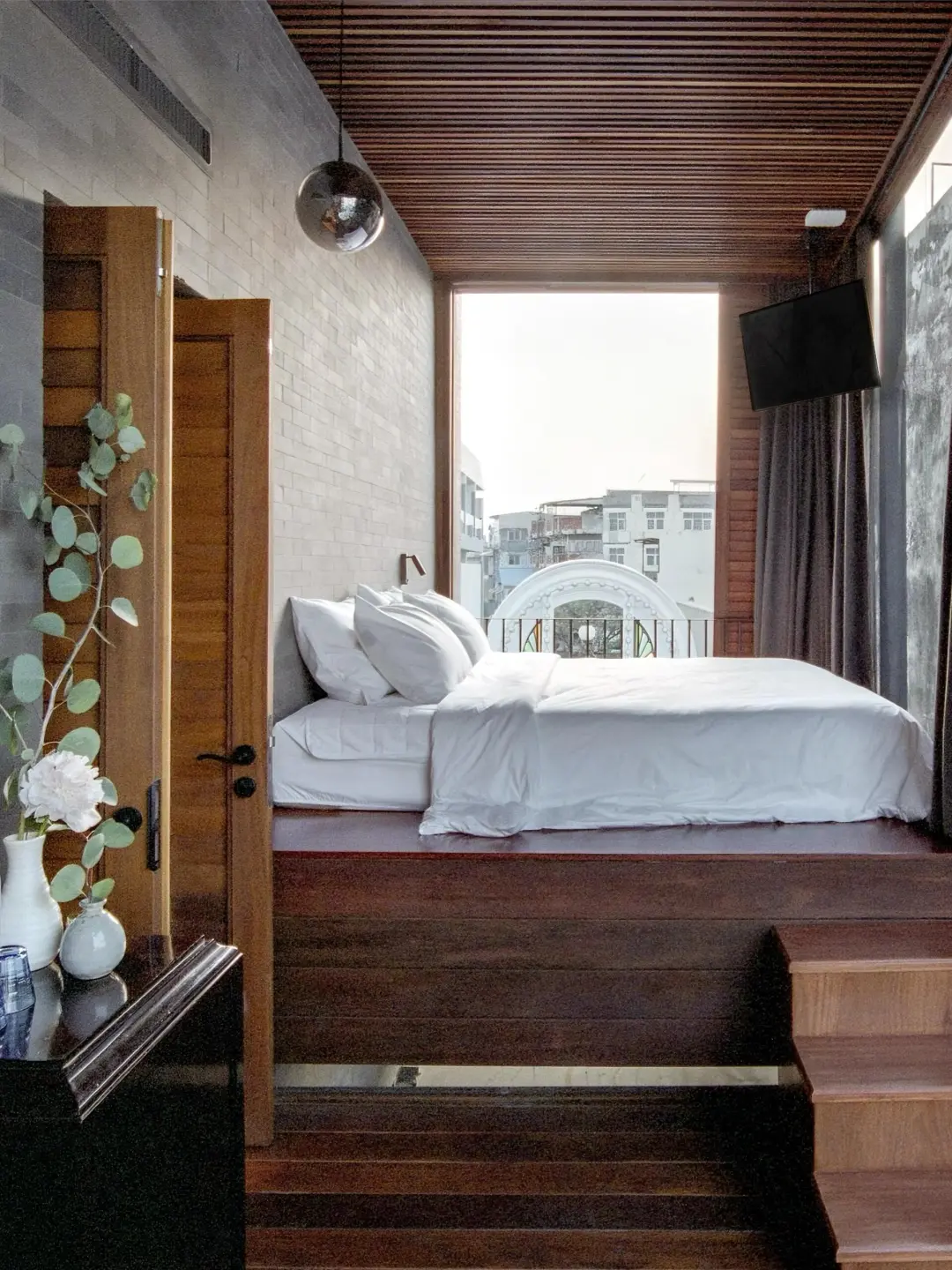 ▪️ 房间也装修的非常好看,配有大浴缸,床紧挨着窗户,可以欣赏到窗外街道风景