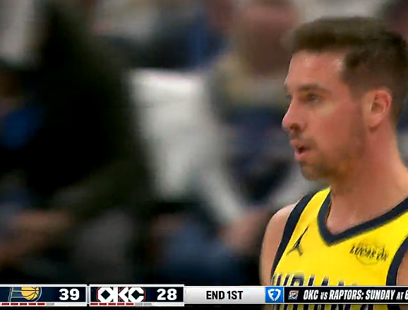 第一节比赛中,麦康奈尔中距离跳投压哨命中,步行者首节39-28领先雷霆。