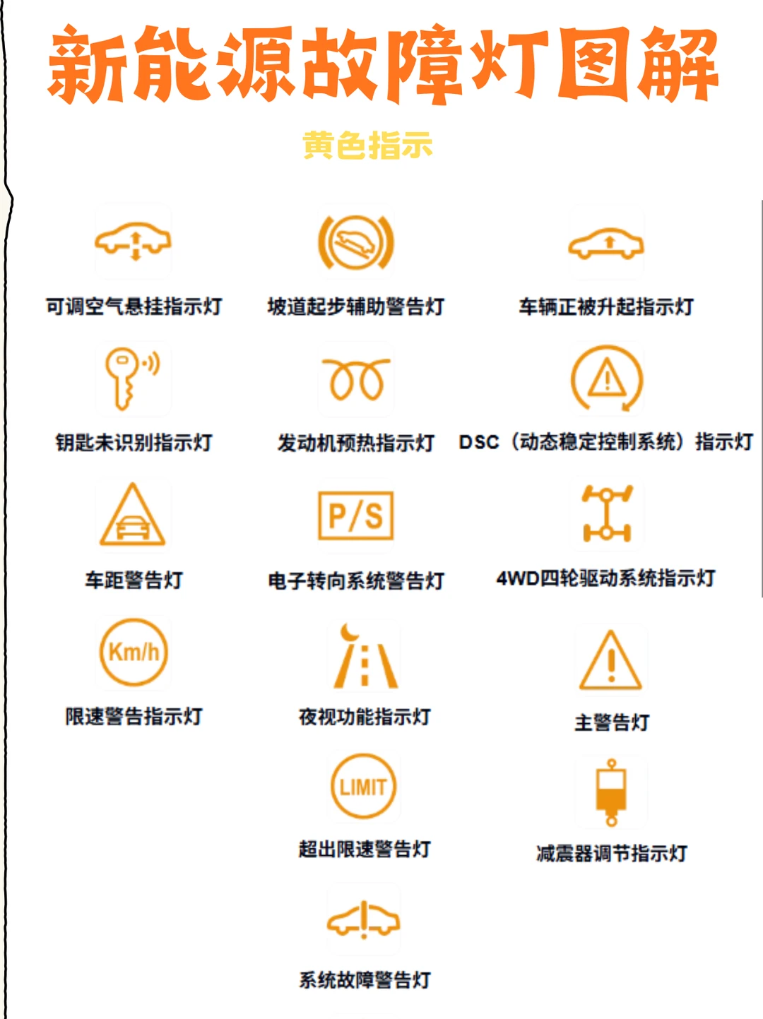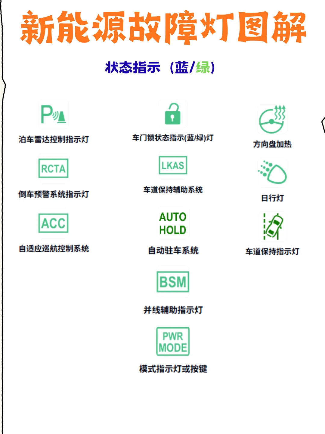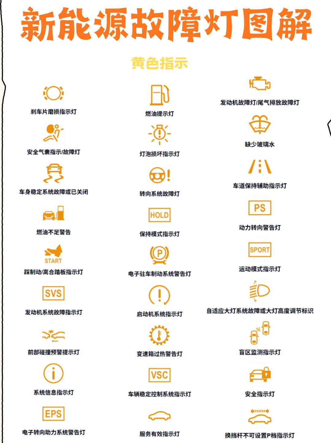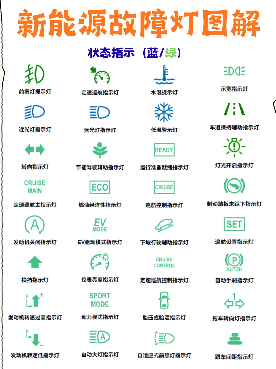 新能源故障灯图解 1.红色指示灯 2.黄色指示灯 3.状态指示(蓝/绿)