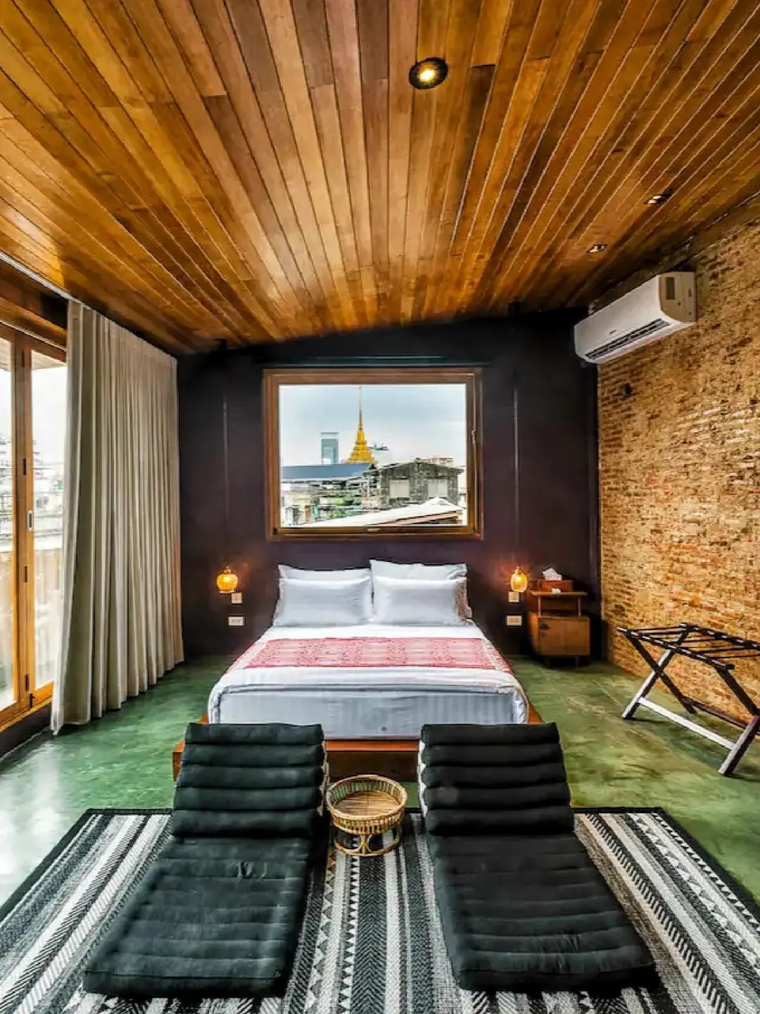 亮点3🌟:从民宿的窗户就可以看到金佛寺,露台上可以喝茶休息,眼前的景色也都是曼谷古老的建筑和真实的生活情景,仿佛回到老时光