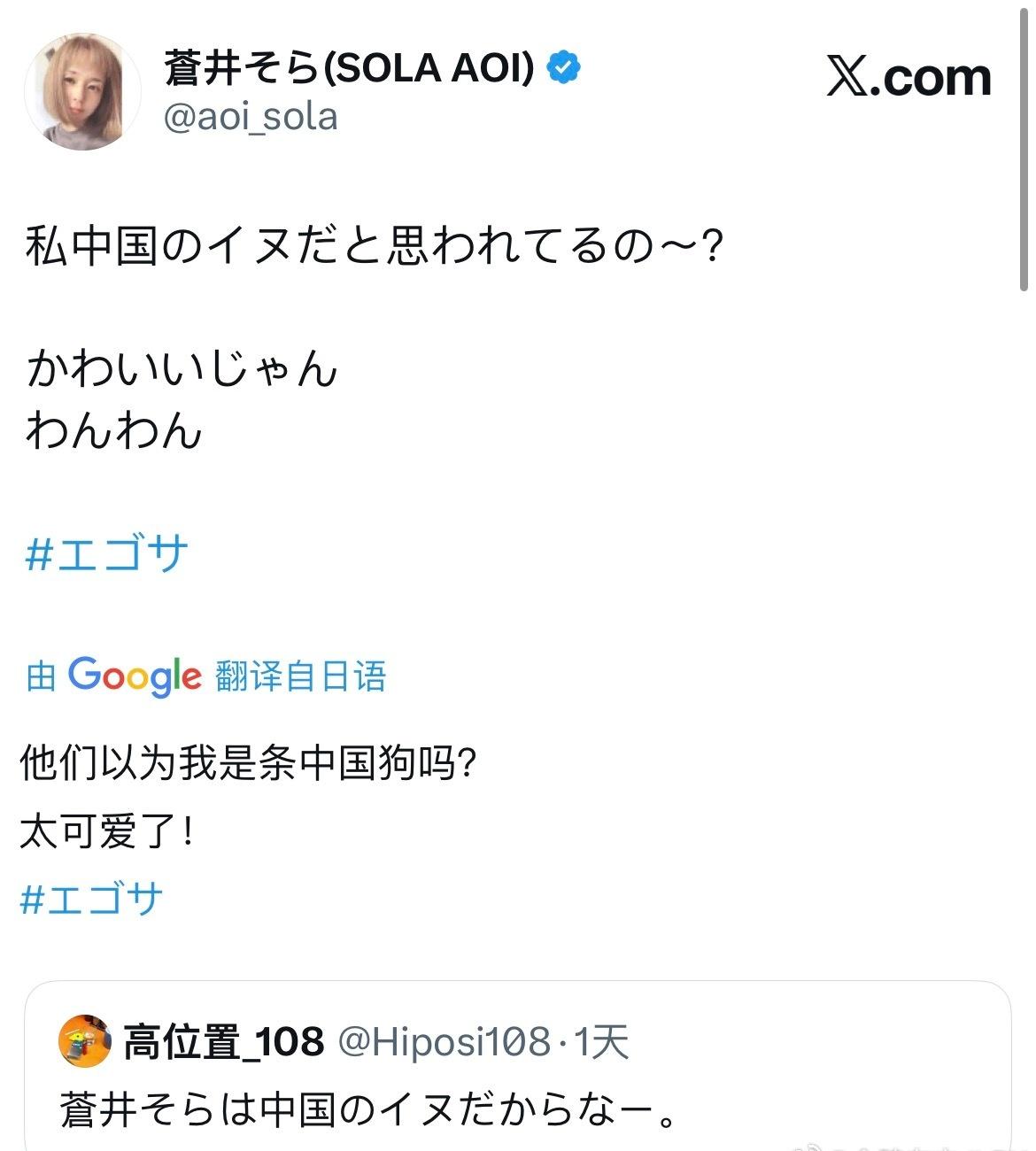 苍老师因为中日关系,在社交媒体上大战日本右翼分子,日本右翼分子鼓吹日本应该发展核武器,苍老师表示反对,还有极端分子骂她是条中国狗。[允悲][允悲][允悲] 热点观点海外新鲜事