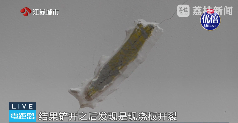李先生表示自己是在2023年6月拿到了这套位于顶楼的房子,装修后,全家人都住了进来。2025年初,顶板出现裂纹,而且裂纹变得越来越多,越来越长。起初,李先生并未在意,认为只是腻子的裂缝。直到2025年3月,李先生找来开发商和承建方,在一番铲开后,发现存在现浇板开裂。
