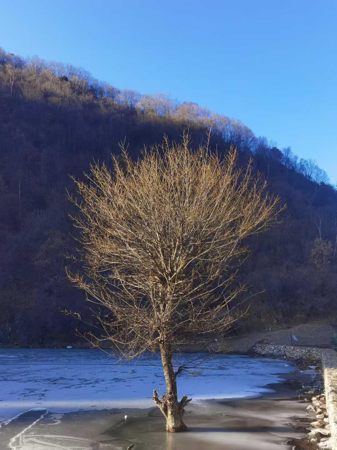 夏见苍翠,今遇霜雪。人迹寥寥,静听冰下流水潺潺,漫闻草间牛啃青欢,冬景自有清欢之
