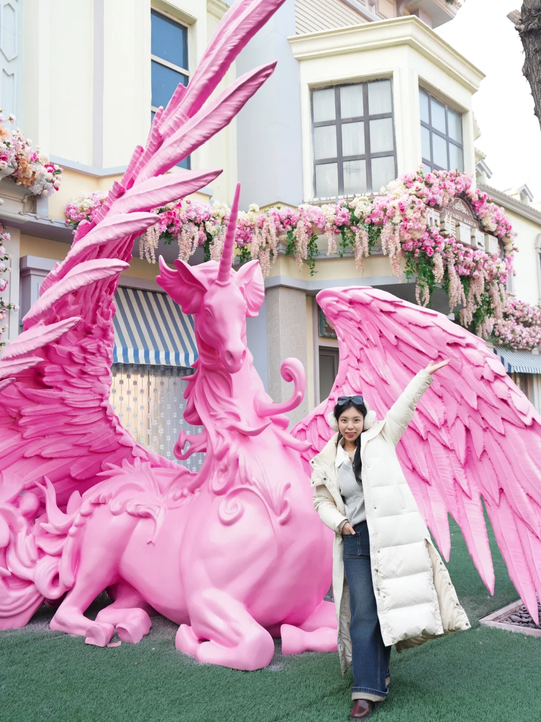 新春装饰裹着梦幻城堡,琉璃独角兽、凌空花瀑超吸睛,傍晚的千灯祈愿景观绝了,暖光洒在城堡上,随手拍都是氛围感大片,童话里的新年也不过如此