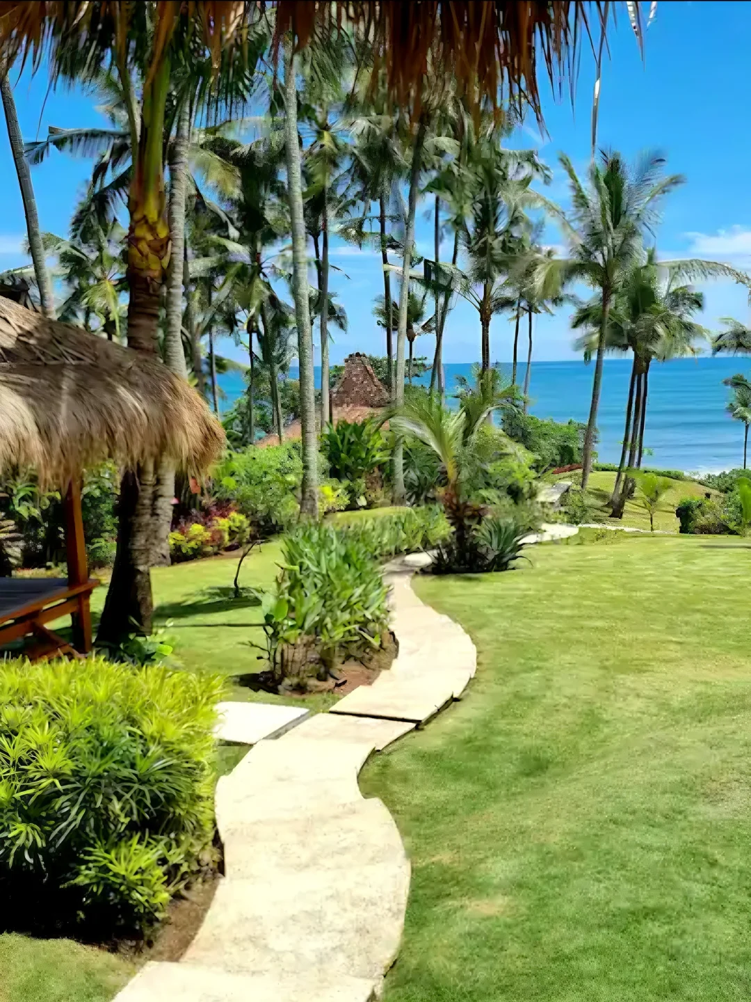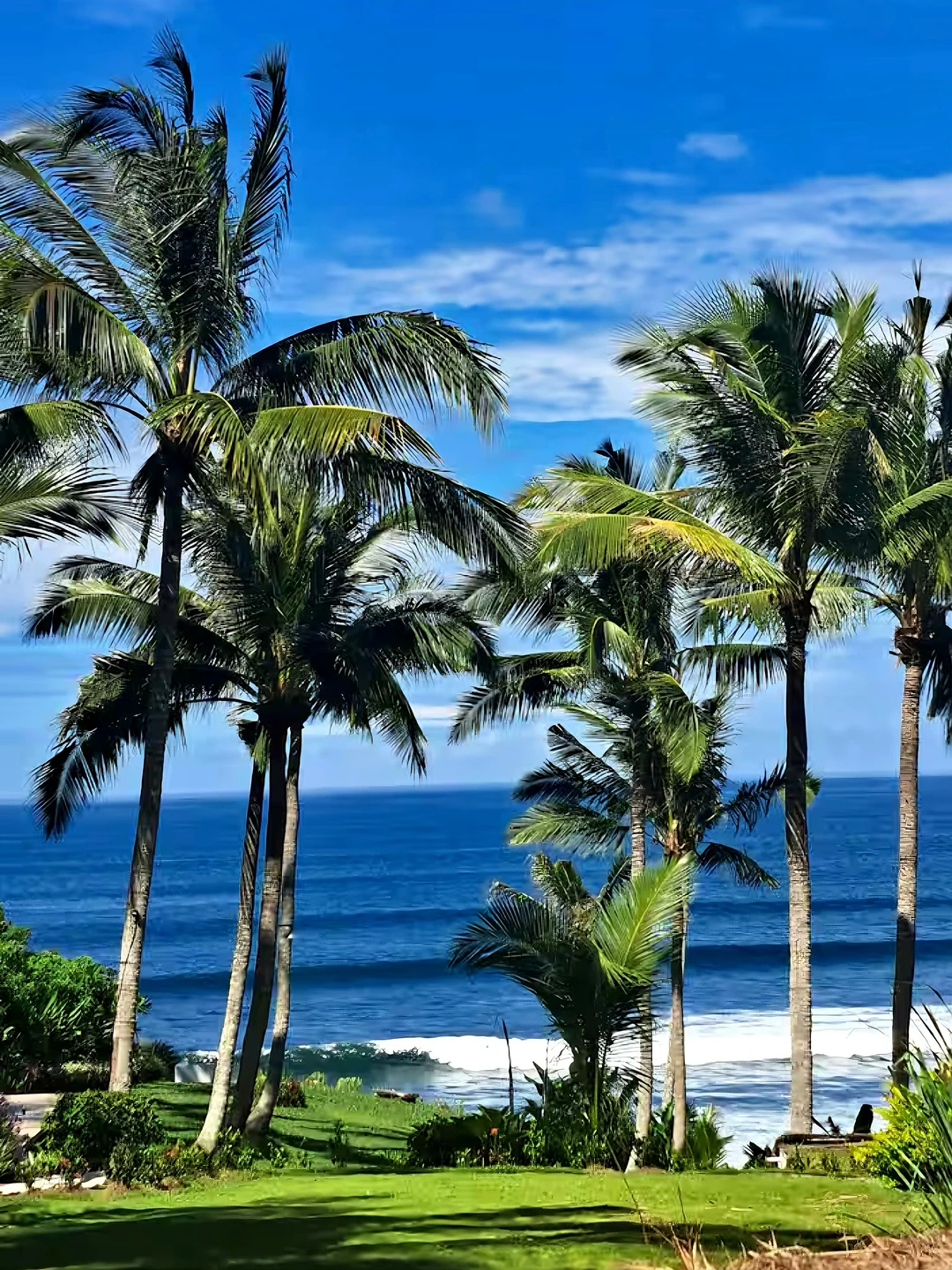 植被非常丰富,被翠绿的草坪🥗郁郁葱葱的热带椰子树🌴和鲜花💐包围,再配上湛蓝的大海💎想不出片都不行