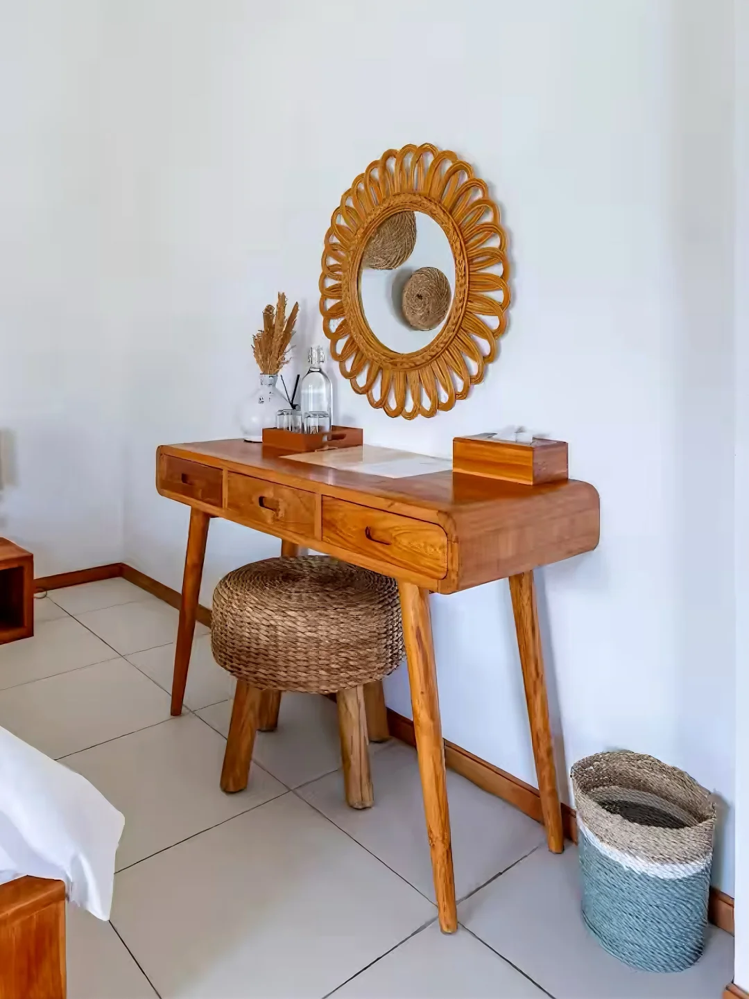 波西米亚风的装修🌾房间很宽敞,有一张1米8的柔软大床,还配有化妆桌和镜子🪞,非常适合女生们