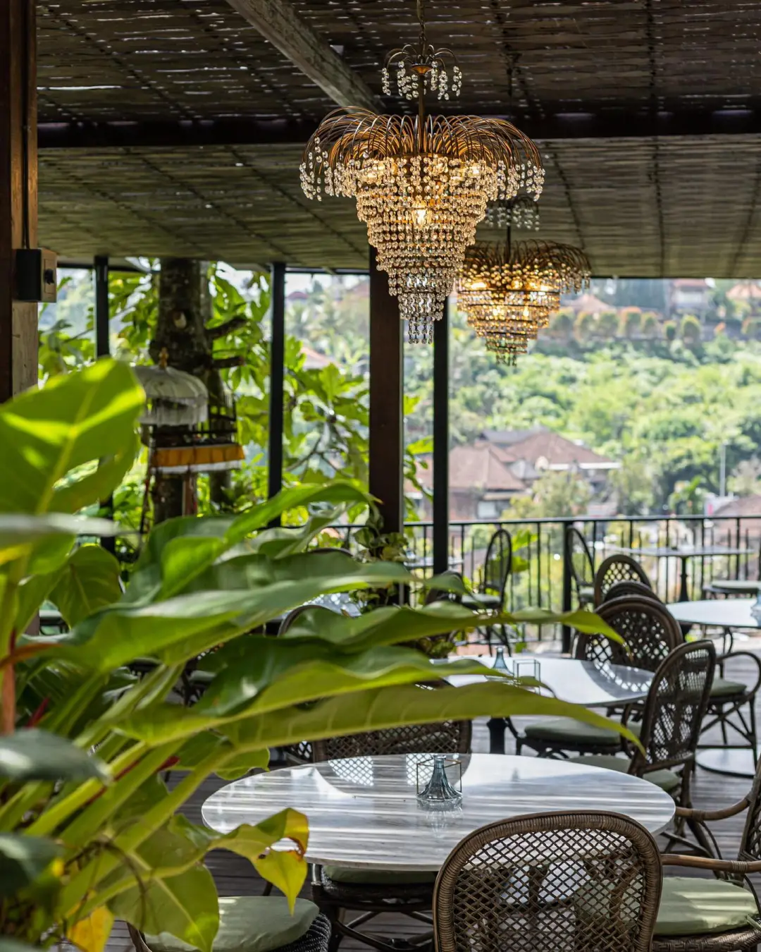 位于巴厘岛乌布郁郁葱葱的山崖上,整个餐厅都被大自然包围,日落时分的景色美的令人心醉