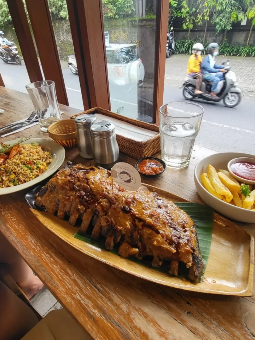 乌布大名鼎鼎的网红餐厅,但是真的好看又好吃,位于一片茂密的稻田里,主打印尼美食,脏鸭饭、蜜汁猪排、牛舌饭都很好吃