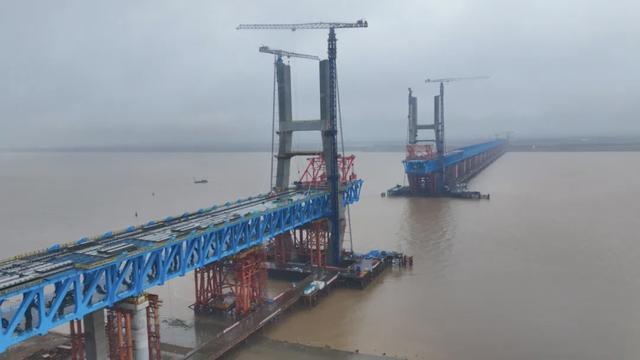 昨天,随着钢梁E30'E31'节段与E28'E29'精准对接,由中铁大桥局承建的沪渝蓉高铁崇启公铁长江大桥主通航孔4号墩正式向3号墩主跨方向单悬臂架设施工。
