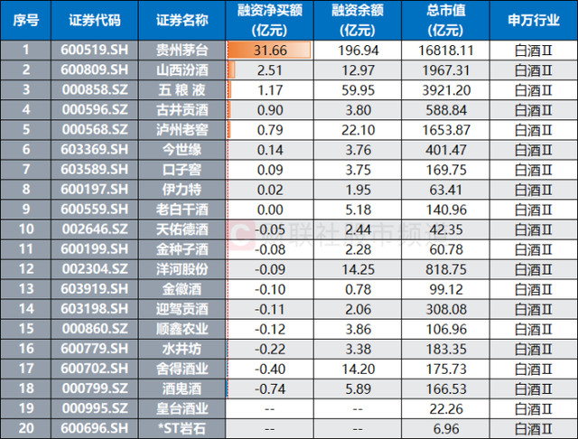 注:白酒股近期融资余额变动情况(截至1月26日数据)