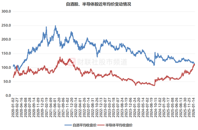 注:白酒股、半导体股近年均价变动情况(截至1月27日收盘)