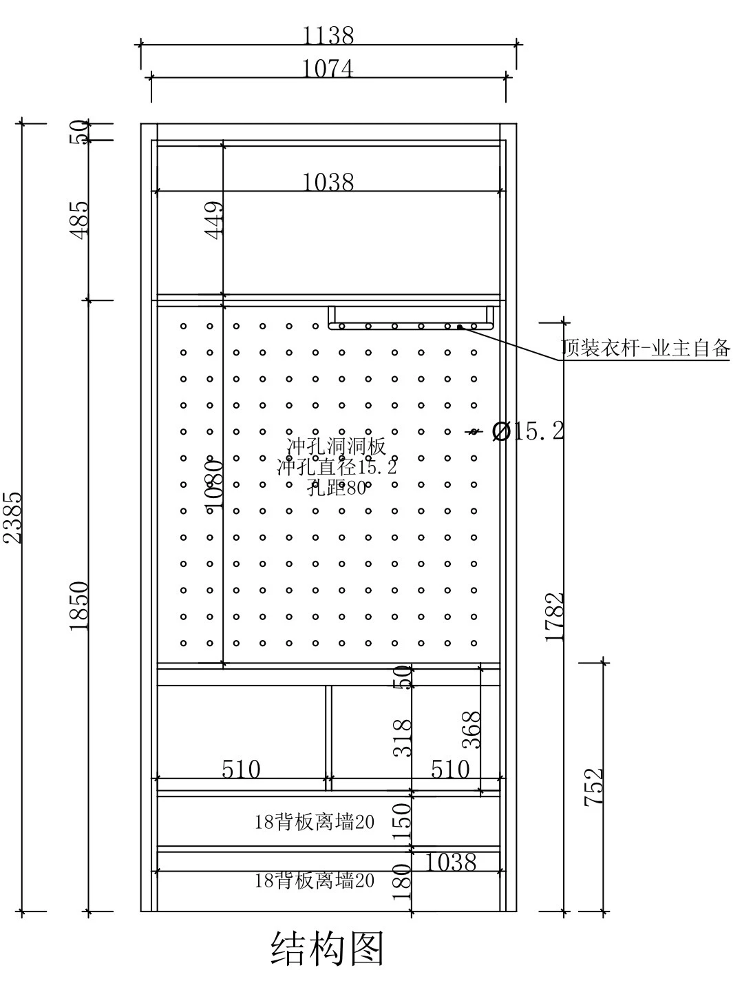 -中间做了洞洞板 可以随便插入隔板、挂杆还有装饰 我就放他的小包和自己的小包