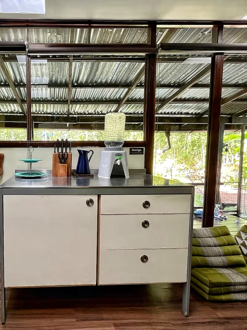 -厨房可以做饭,冰箱、烹饪基本用品、基本餐具都有,可以直接带着食材来