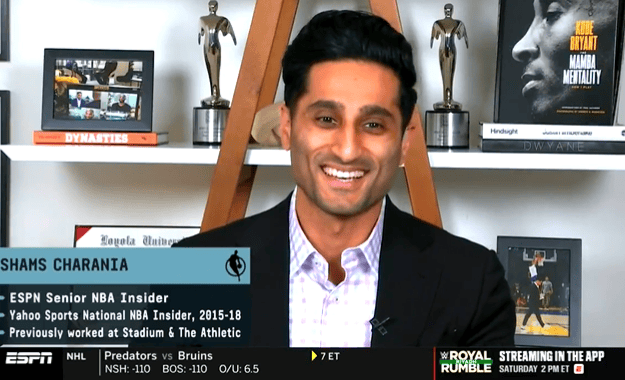 虎扑01月28日讯今日,美媒《ClutchPoints》在官方社媒上转发了一段记者Shams在参加电视节目时的视频片段。
