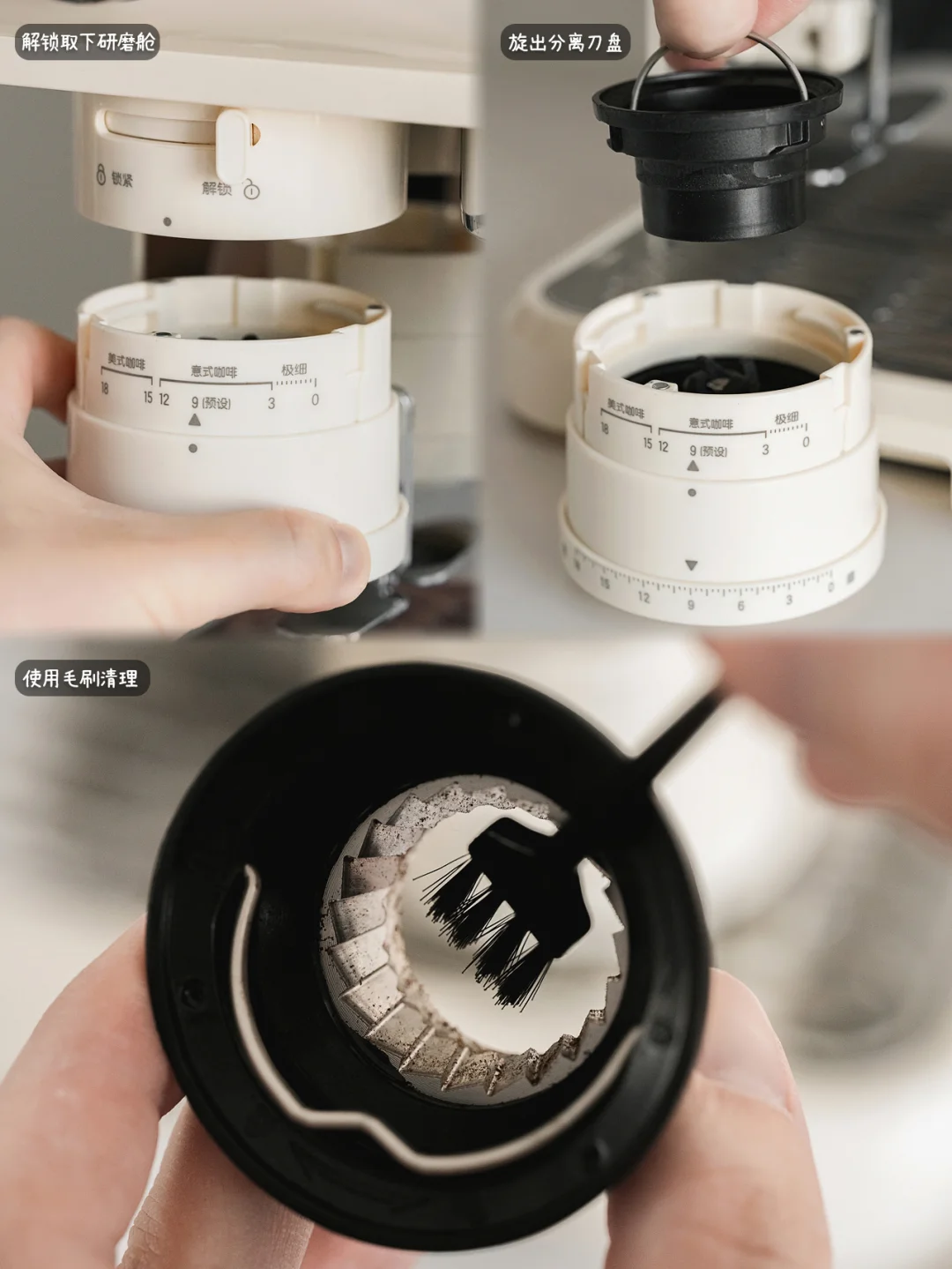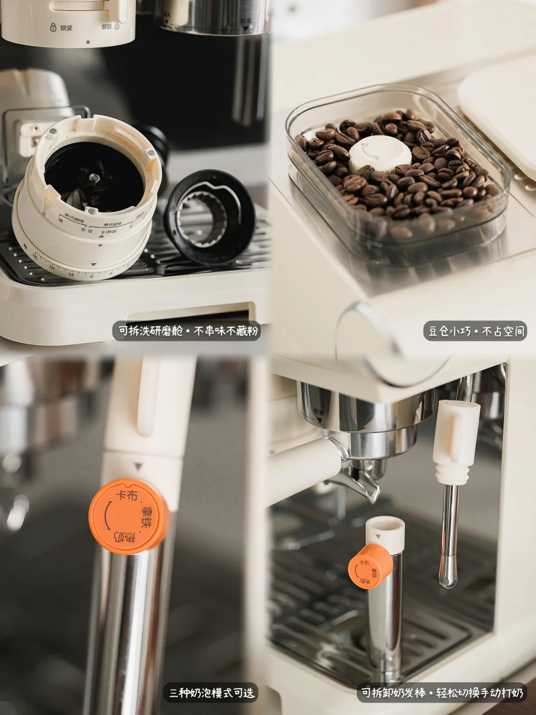 咖啡机配有可拆多档研磨舱,好调节易打理