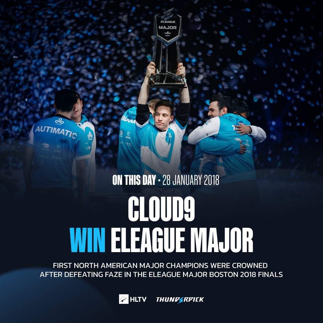 虎扑01月28日讯2018年的今天,Cloud9在主场观众的欢呼声中,击败FaZe,捧起了ELEAGUE波士顿Major的冠军奖杯,成为历史上第一支也是唯一一支赢得CS:GOMajor冠军的北美战队。